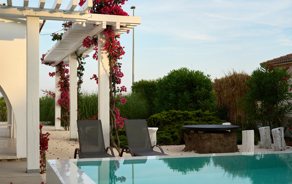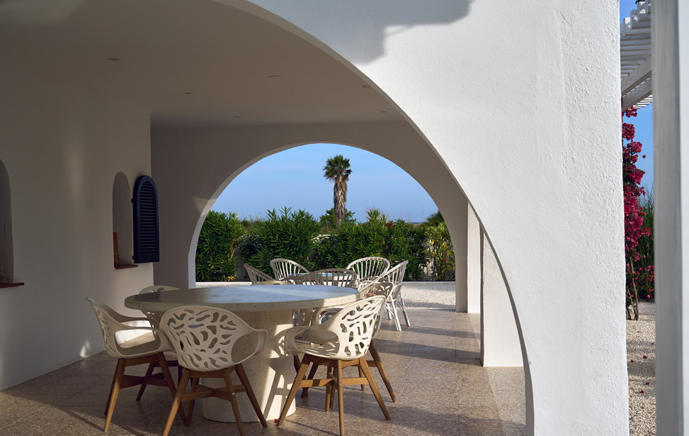 Casa Eucaliptus a toutes ses chambres au rez-de-chaussée. Cela le rend très confortable et accessible. Son architecture méditerranéenne avec des murs blancs, des porches et des arcades rend la vie plus facile pour le plein air. Les activités quotidiennes sont développées indistinctement à l'intérieur et à l'extérieur, ce qui rend l'espace de vie beaucoup plus grand que la limitation des quatre murs.
